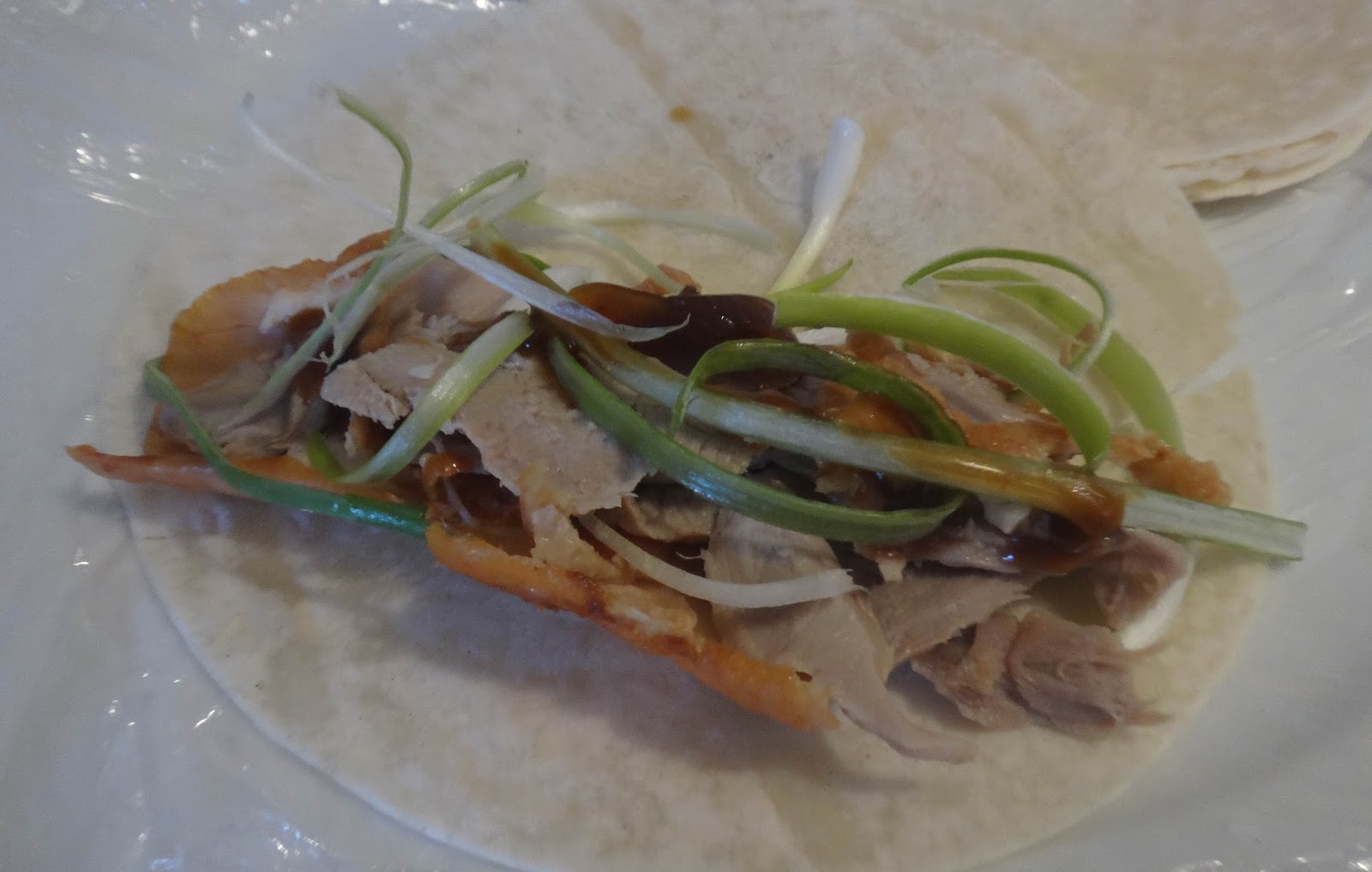 Thú thực, tôi vì tò mò muốn biết món ăn nổi tiếng đến nỗi Tổng thống Mỹ không thể đặt được phòng riêng nhỏ vì gọi phone đặt bàn trễ nhưng ông vẫn đồng ý ngồi nơi chung với toàn bộ thực khách khác của nhà hàng bữa tối hôm đó để thưởng thức món vịt này thì chắc chắn nó phải đặc biệt ghê lắm thì mình cũng nên nếm thử coi vị ra sao một lần cho biết chứ thực sự lần đầu ăn món này tôi không thấy có gì nổi trội! Có phải vì nước chấm hơi ngọt so với khẩu vị của tôi hay vì giá cả của nó khiến tôi… Nghẹn ngào không nuốt nổi? Có thể lắm! Vừa thưởng thức tôi vừa tự nhủ sẽ không bao giờ gọi món vịt Bắc kinh thêm lần thứ hai vì lý do tế nhị này!